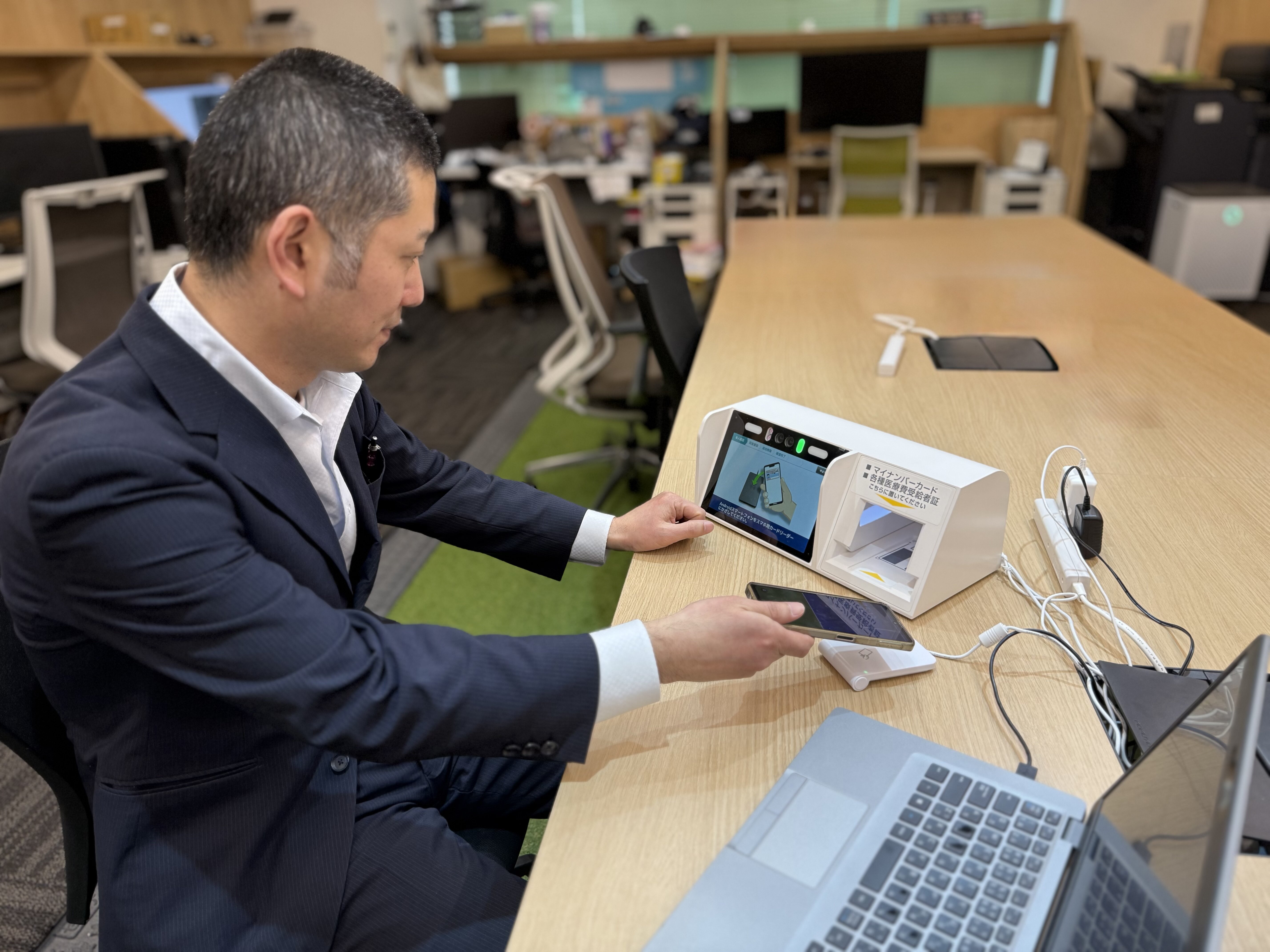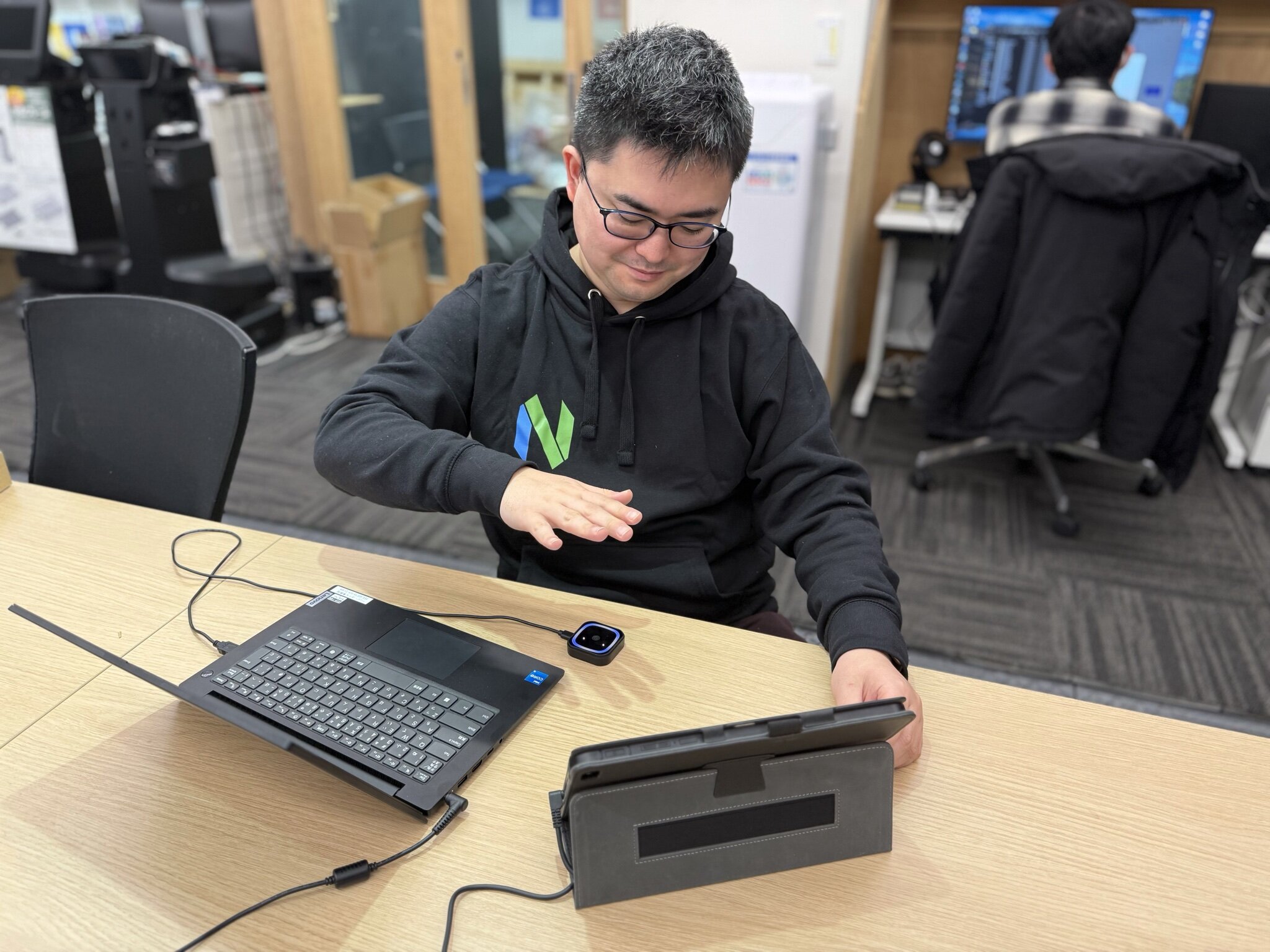手のひら静脈認証サービス『Gen-pa(ジェンパ)』やオンライン資格確認対応顔認証付きカードリーダー『マイナタッチ』など、新規商材のハードウェア開発全般を担当しています。具体的には、製品の基盤となる部分の設計から、展示会で使用するデモ機の製作まで、新しいアイデアを「物理的な形」にする工程をすべて担っています。